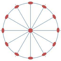 | Keywords: 6mmm point group.png en Stereographic representation of the symmetry point group 6/mmm The 001 direction is perpendicular to the projection plane The mirror planes are represented in blue the rotation axes in red The thin black ticks show the direction of the equivalent crystallographic axes a1 a2 and a3 fr Représentation stéréographique du groupe ponctuel de symétrie 6/mmm La direction 001 est perpendiculaire au plan de projection Les plans miroirs sont représentés en bleu les axes de rotation en rouge Les trait fins noirs montrent la direction des axes cristallographiques équivalents a1 a2 et a3 own Perditax 2011-06-06 Cc-zero Point groups |