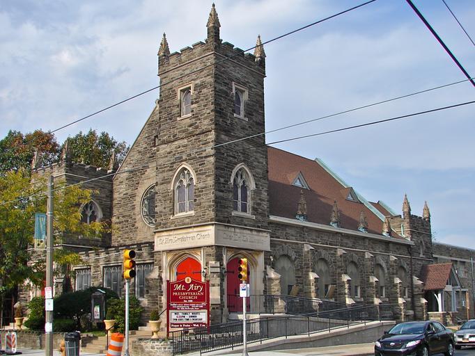Keywords: 7101 Germantown.JPG en 7108 Germantown Ave Philadelphia PA Mt Airy Presbyterian Church in Colonial Germantown Historic District own Smallbones 2010-10-11 Colonial Germantown Historic District Presbyterian churches in Pennsylvania
