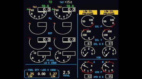 Keywords: 737-800 EIS After Landing.jpg en EIS Display of a Boeing 737-800 after landing and engine shutdown accessed via external data cable linked to output parameters own Westnest 2015-06-01 Avionics