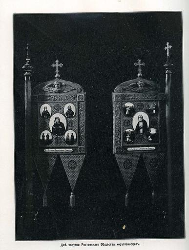 | Keywords: 73. Две хоругви Ростовского общества хоругвеностцев.jpg ru Две хо угви Ростовского общества хо угвеностцев 1904 http //andcvet narod ru/arxan/24/sam html не указан other versions Custom license marker 2014 09 24 PD-RusEmpire Uploaded with UploadWizard Album of the Sarov Hermitage views 1904 |