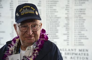 MAKE A MEME View Large Image Anniversary Pearl Harbor Day commemoration ceremony 141207-N-GI544-563.jpg en Lauren Bruner USS Arizona survivor visits the USS Arizona Memorial during the 73rd Anniversary Pearl Harbor Day commemoration ceremony at the Pearl Harbor Visitor ...
