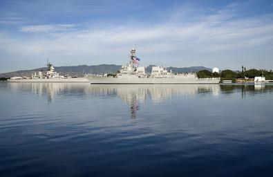 | Keywords: 75th Commemoration Event of the Attack on Pearl Harbor 161207-N-WC566-033.jpg en 161207-N-WC566-033 PEARL HARBOR Dec 7 2016 The guided-missile destroyer USS Halsey DDG 97 performs a pass-in-review between the Battleship Missouri Memorial and USS Arizona Memorial during the 75th Commemoration Event of the attacks on Pearl Harbor and Oahu at Joint Base Pearl Harbor-Hickam The 75th commemoration co-hosted by the U S Military the National Park Service and the State of Hawaii provided veterans family members service members and the community a chance to honor the sacrifices made by those who were present Dec 7 1941 as well as throughout the Pacific theater Since the attacks the U S and Japan have endured more than 70 years of continued peace a cornerstone of security and prosperity in the Indo-Asia-Pacific region As a Pacific nation the U S is committed to continue its responsibility of protecting the Pacific sea-lanes advancing international ideals and relationships well as delivering security influence and responsiveness in the region U S Navy photo by Petty Officer 2nd Class Gabrielle Joyner/Released Unit Navy Media Content Services DVIDS Tags Pearl Harbor; NPS; DoD; Hero; WWII Veterans; Military History; NPASE; airpower; National Park Service; Veterans; Navy; History; Hawaii; PACOM; Sailors; WWII; USN; December 7; WW2; Legend; PACFLT; Never Forget; multi-service; Hickam Field; Never Forgotten; NMCS; Honor The Fallen; Joint Base Pearl Harbor Hickam; DVIDS Bulk Import; NPASE Hawaii; Pearl Harbor Remembrance; npase det hawaii; Gabrielle Joyner; Honor Them; PH75; PH75USN; Pearl Harbor 75; Remember Our Vets; Pacific Veterans; Honor the Past; Inspire the Future; 75th Commemoration; National Pearl Harbor Remembrance Day Commemoration; Honoring the Past; Inspiring the Future 2016-12-07 Petty Officer 2nd Class Gabrielle Joyner https //www dvidshub net/image/3045582/75th-commemoration-event-attack-pearl-harbor 161207-N-WC566-033 2016-12-09 00 53 PEARL HARBOR HI US PD-USGov-Military-Navy 75th anniversary of Pearl Harbor attacks Battleship Missouri Memorial USS Arizona Memorial USS Halsey DDG-97 Images from DoD uploaded by Fæ |