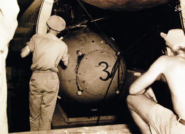 Keywords: 77-BT-56: Tinian Island, August 1945. Atomic Bomb, Fat Man, being transported. (8/25/2015). 77-BT-56: Tinian Island, August 1945. Atomic Bomb, Fat Man, being transported. (8/25/2015).