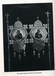 | Keywords: 79. Две хоругви Ярославского общества хоругвеносцев.jpg ru Две хо угви Я ославского общества хо угвеносцев 1904 http //andcvet narod ru/arxan/24/sam html не указан other versions Custom license marker 2014 09 24 PD-RusEmpire Uploaded with UploadWizard Album of the Sarov Hermitage views 1904 |