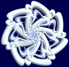 | Keywords: mathematica 3d cg parametricplot3d texture torus 輪環 りんかん ドーナツ どーなつ 六芒星 ろくぼうせい 六光星 ろくこうせい 六稜星 ろくりょうせい program プログラム code コード algorithm コード アルゴリズム hexagram geometric sculpture geometricsculpture shape geometry sculpture mapping テクスチャ マッピング 模様 もよう design pattern デザイン パターン graphic グラフィック グラフィクス structure 意匠 構造 symmetry 対称性 たいしょうせい シンメトリー 対称 たいしょう algorithm indoor black background tangle bright SetOptions[ParametricPlot3D, PlotRange -> Full, Mesh -> None, Boxed -> False, Axes -> None, PlotPoints -> 400, ImageSize -> 1000, PlotStyle -> Directive[Specularity[White, 30], Texture[Import["D:/tmp/863.jpg"]]], TextureCoordinateFunction -> ({#4 + 2 #5, #5/Pi} &), Lighting -> "Neutral"]; a = 4; (* center hole size of a torus *) b = 6; (* hexa-torus *) c = 3; (* distance from the center of rotation *) d = 7; (* number of torus *) f[v_] := Sum[Sin[(2 k - 1) v]/(2 k - 1), {k, 4}]; x = (a - Cos[t] - Sin[b s]) Cos[s + Pi/(2 b)] + c; y = Sin[t] + c; z = (a - Cos[t] - Sin[b s]) f[s + Pi/(2 b)] + c; rot = Table[{x, y, z}.RotationMatrix[2 i Pi/d, {0, 1, 0}], {i, d}]; ParametricPlot3D[rot, {t, 0, 2 Pi}, {s, 0, 2 Pi}] (*--- The Texture The g[] is a 4-partial sum of the Fourier series for Square wave. g[]は矩形波のフーリエ展開の最初の4項 *) SetOptions[ParametricPlot3D, PlotRange -> Full, Mesh -> None, Boxed -> False, Axes -> None, PlotPoints -> 400, ImageSize -> 1000, PlotStyle -> Directive[Specularity[White, 30], Texture[Import["D:/tmp/863.jpg"]]], TextureCoordinateFunction -> ({#4 + 2 #5, #5/Pi} &), Lighting -> "Neutral"]; a = 4; (* center hole size of a torus *) b = 6; (* hexa-torus *) c = 3; (* distance from the center of rotation *) d = 7; (* number of torus *) f[v_] := Sum[Sin[(2 k - 1) v]/(2 k - 1), {k, 4}]; x = (a - Cos[t] - Sin[b s]) Cos[s + Pi/(2 b)] + c; y = Sin[t] + c; z = (a - Cos[t] - Sin[b s]) f[s + Pi/(2 b)] + c; rot = Table[{x, y, z}.RotationMatrix[2 i Pi/d, {0, 1, 0}], {i, d}]; ParametricPlot3D[rot, {t, 0, 2 Pi}, {s, 0, 2 Pi}] (*--- The Texture The g[] is a 4-partial sum of the Fourier series for Square wave. g[]は矩形波のフーリエ展開の最初の4項 *) |