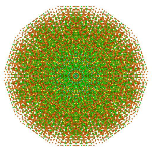 Keywords: 7-cube t012346 B5.svg en 7-cube family graph in B5 en Coxeter plane Vertices only no edges due to file sizes too large own 10/21/10 self Set of colored Coxeter plane graphs red orange yellow green vertices
