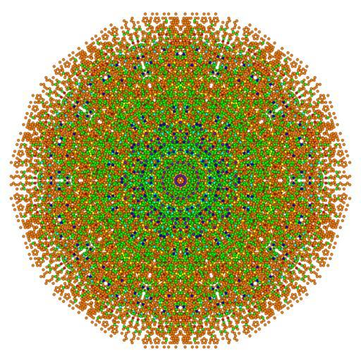 Keywords: 7-cube t012356 B5.svg en 7-cube family graph in B5 en Coxeter plane Vertices only no edges due to file sizes too large own 10/21/10 self Set of colored Coxeter plane graphs red orange yellow green vertices