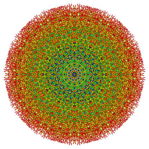 Keywords: 7-cube t012356 B6.svg en 7-cube family graph in B6 en Coxeter plane Vertices only no edges due to file sizes too large own 10/21/10 self Set of colored Coxeter plane graphs red orange yellow green vertices