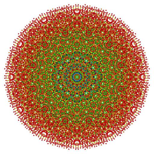 Keywords: 7-cube t01245 B6.svg en 7-cube family graph in B6 en Coxeter plane Vertices only no edges due to file sizes too large own 10/21/10 self Set of colored Coxeter plane graphs red orange yellow green vertices