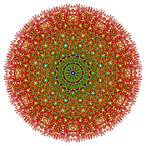 Keywords: 7-cube t01256 B6.svg en 7-cube family graph in B6 en Coxeter plane Vertices only no edges due to file sizes too large own 10/21/10 self Set of colored Coxeter plane graphs red orange yellow green vertices