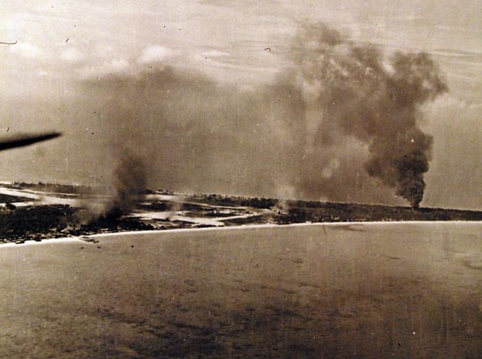 | Keywords: 80-G-205299: Aerial of Mille Atoll, Marshall Islands, during a bombing attack by U.S. Navy planes, November 1943. (7/14/2015). 80-G-205299: Aerial of Mille Atoll, Marshall Islands, during a bombing attack by U.S. Navy planes, November 1943. (7/14/2015). |