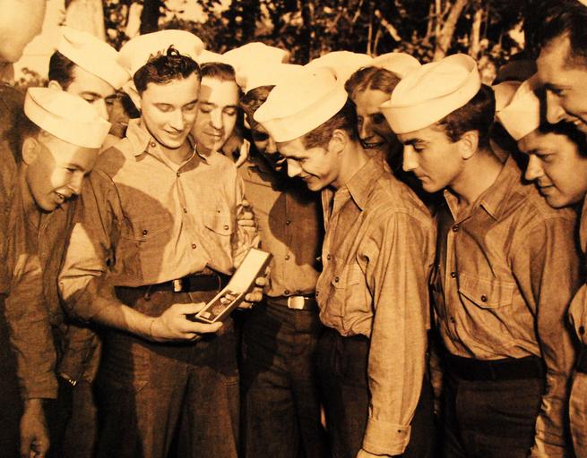 | Keywords: 80-G-244259: An admiring crowd gathers around PhOM2c W.T. Commerford who was awarded the Navy and Marine Corps Medal. Photograph released July 8, 1944. Official U.S. Navy photograph, now in the collections of the National Archives. (2016/10/04). 80-G-244259: An admiring crowd gathers around PhOM2c W.T. Commerford who was awarded the Navy and Marine Corps Medal. Photograph released July 8, 1944. Official U.S. Navy photograph, now in the collections of the National Archives. (2016/10/04). |
