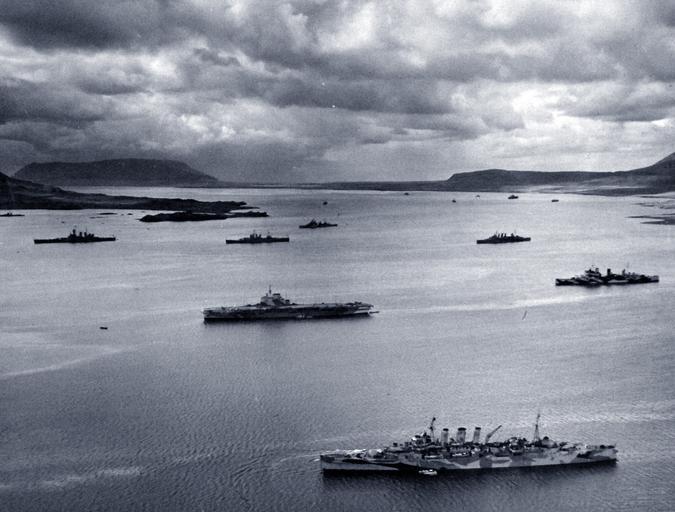 | Keywords: outdoor monochrome sea waterfront water bay boat vehicle serene sky 80-G-24832: The covering forces of the PQ-17 Convoy (British and American ships) at anchor in the harbor at Hvalfjord, Iceland, May-June 1942. The convoy left Iceland on June 27, but a large part of the convoy was wiped out by German aircraft from July 1 to 10. Upper left, USS Washington then USS Wichita. Middle: HMS Victorious. Bottom: HMS Norfolk. Right Middle: HMS London. (2015/10/20). 80-G-24832: The covering forces of the PQ-17 Convoy (British and American ships) at anchor in the harbor at Hvalfjord, Iceland, May-June 1942. The convoy left Iceland on June 27, but a large part of the convoy was wiped out by German aircraft from July 1 to 10. Upper left, USS Washington then USS Wichita. Middle: HMS Victorious. Bottom: HMS Norfolk. Right Middle: HMS London. (2015/10/20). |