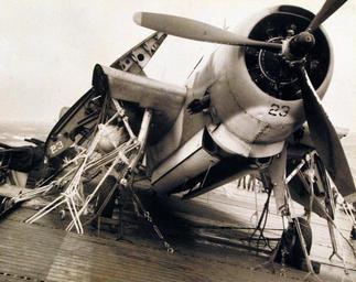 | Keywords: 80-G-298051: Typhoon Cobra (Halsey’s Typhoon), December 17, 1944. TBM spotted on flight deck of USS Anzio (CVE 27) where it rode out typhoon which carried away several other planes similarly lashed down. Photographed on December 18, 1944. U.S. Navy Photograph, now in the collections of the National Archives. (2016/02/02). 80-G-298051: Typhoon Cobra (Halsey’s Typhoon), December 17, 1944. TBM spotted on flight deck of USS Anzio (CVE 27) where it rode out typhoon which carried away several other planes similarly lashed down. Photographed on December 18, 1944. U.S. Navy Photograph, now in the collections of the National Archives. (2016/02/02). |