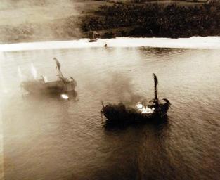 | Keywords: 80-G-304383: Attack on Japanese shipping by Ensign Allen of VPB 117 showing camouflaged Japanese ship burning in Philippine waters. Photograph, December 16, 1944. Official U.S. Navy photograph, now in the collections of the National Archives. (2016/07/19). 80-G-304383: Attack on Japanese shipping by Ensign Allen of VPB 117 showing camouflaged Japanese ship burning in Philippine waters. Photograph, December 16, 1944. Official U.S. Navy photograph, now in the collections of the National Archives. (2016/07/19). |