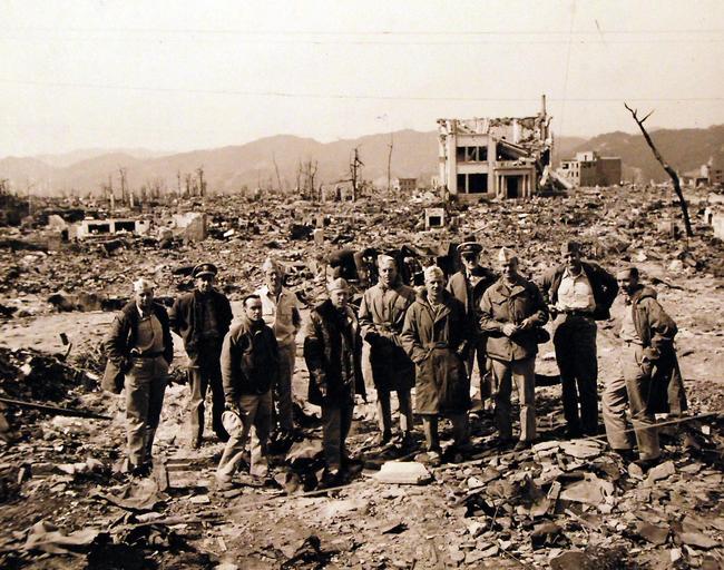 Keywords: outdoor people ruins architecture 80-G-354619: Atomic Bomb Damage to Hiroshima, as seen by USS Appalachian (AGC-1). Officers of USS Appalachian (AGC-1) at bomb damaged Hiroshima. Photographed by PhoM3/C George Almarez. Photographed received October 26, 1945. U.S. Navy photograph, now in the collections of the National Archives. (2016/06/21). 80-G-354619: Atomic Bomb Damage to Hiroshima, as seen by USS Appalachian (AGC-1). Officers of USS Appalachian (AGC-1) at bomb damaged Hiroshima. Photographed by PhoM3/C George Almarez. Photographed received October 26, 1945. U.S. Navy photograph, now in the collections of the National Archives. (2016/06/21). |