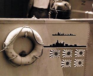 | Keywords: indoor 80-G-36735: Naval Battle of Guadalcanal, 12-15 November 1942. USS Sterett (DD 407), trophy flags after the battle. Sterett also faced the Japanese battleship Hiei, which was sunk during the battle on November 14. Photograph released November 18, 1942. U.S. Navy Photograph, now in the collections of the National Archives. (2016/11/25). 80-G-36735: Naval Battle of Guadalcanal, 12-15 November 1942. USS Sterett (DD 407), trophy flags after the battle. Sterett also faced the Japanese battleship Hiei, which was sunk during the battle on November 14. Photograph released November 18, 1942. U.S. Navy Photograph, now in the collections of the National Archives. (2016/11/25). |