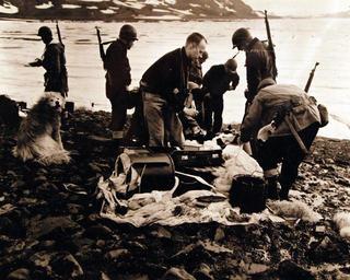 | Keywords: outdoor 80-G-43837: Mixed landing forces of U.S. Coast Guard and Army Commandos, members of the U.S. Navy’s Greenland’s Patrol Expeditionary Force, search the rugged terrain of Greenland for remnants of a German Naval and Military force which were operating a radio base there. One prisoner was captured, others had evacuated. Shown: Examining an abandoned Nazi parachute kit found on the site of the German Army’s radio base. Food, hand grenades, and other material were abandoned by the Nazis following the attack on the base by an American Army Air Force. The Germans presumably were evacuated by plane. Photograph released November 20, 1943. (2015/10/13). 80-G-43837: Mixed landing forces of U.S. Coast Guard and Army Commandos, members of the U.S. Navy’s Greenland’s Patrol Expeditionary Force, search the rugged terrain of Greenland for remnants of a German Naval and Military force which were operating a radio base there. One prisoner was captured, others had evacuated. Shown: Examining an abandoned Nazi parachute kit found on the site of the German Army’s radio base. Food, hand grenades, and other material were abandoned by the Nazis following the attack on the base by an American Army Air Force. The Germans presumably were evacuated by plane. Photograph released November 20, 1943. (2015/10/13). |