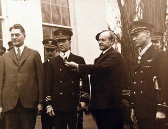 | Keywords: 80-G-465610: President Calvin Coolidge presented the Medal of Honor to Commander Richard E. Byrd. Byrd and Machinist Floyd Bennett, far right, received the Medal of Honor for their courageous expedition to the North Pole and return in May 1926. Secretary of the Navy Curtis Wilber is to the left. Official U.S. Navy Photograph, now in the collections of the National Archives. (2016/10/18). 80-G-465610: President Calvin Coolidge presented the Medal of Honor to Commander Richard E. Byrd. Byrd and Machinist Floyd Bennett, far right, received the Medal of Honor for their courageous expedition to the North Pole and return in May 1926. Secretary of the Navy Curtis Wilber is to the left. Official U.S. Navy Photograph, now in the collections of the National Archives. (2016/10/18). |