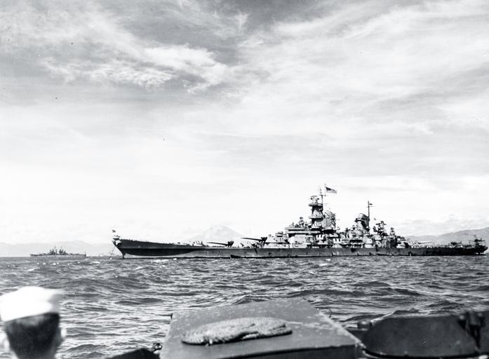 | Keywords: outdoor monochrome vehicle boat sky blackandwhite black and white 80-G-490436: USS Missouri (BB-63). Anchored in Sagami Wan or Tokyo Bay, Japan, with other units of the U.S. Third Fleet, 30 August 1945. Mount Fujiyama is faintly visible in the distance. Missouri is flying Admiral William F. Halsey's four-star flag. Official U.S. Navy Photograph, now in the collections of the National Archives. . (2015/12/28). 80-G-490436: USS Missouri (BB-63). Anchored in Sagami Wan or Tokyo Bay, Japan, with other units of the U.S. Third Fleet, 30 August 1945. Mount Fujiyama is faintly visible in the distance. Missouri is flying Admiral William F. Halsey's four-star flag. Official U.S. Navy Photograph, now in the collections of the National Archives. . (2015/12/28). |