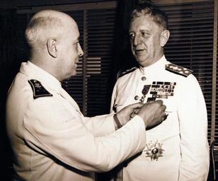 | Keywords: people indoor 80-G-49903: Vice Admiral Raymond Fernard, Chief of French Naval Mission to the U.S., (left), pins Legion of Honor rank of Grand Officer on Vice Admiral Henry K. Hewitt, USN, in a ceremony held at the Army/Navy Club in Washington, D.C. Photograph received July 12, 1945. U.S. Navy Photograph, now in the collections of the National Archives. (2016/02/23). 80-G-49903: Vice Admiral Raymond Fernard, Chief of French Naval Mission to the U.S., (left), pins Legion of Honor rank of Grand Officer on Vice Admiral Henry K. Hewitt, USN, in a ceremony held at the Army/Navy Club in Washington, D.C. Photograph received July 12, 1945. U.S. Navy Photograph, now in the collections of the National Archives. (2016/02/23). |