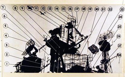| Keywords: drawing photo border 80-G-701371: Radar radio antenna installations atop USS Lexington (CVA 16), the functions of the various units in the “Bed Spring Battery” following is the key to identifying numbers. 4-Fire Control Radar; 10 – Air Search and High Finder Radar; 12- Radar Test Equipment; 13- Surface Search Radar; 15 & 22 Homing Beacon Radar; 21 & 23 Air Search Radar; 26: ID Radar. All other numbers are radio communications. Photograph released November 17, 1945. (7/8/2015). 80-G-701371: Radar radio antenna installations atop USS Lexington (CVA 16), the functions of the various units in the “Bed Spring Battery” following is the key to identifying numbers. 4-Fire Control Radar; 10 – Air Search and High Finder Radar; 12- Radar Test Equipment; 13- Surface Search Radar; 15 & 22 Homing Beacon Radar; 21 & 23 Air Search Radar; 26: ID Radar. All other numbers are radio communications. Photograph released November 17, 1945. (7/8/2015). |