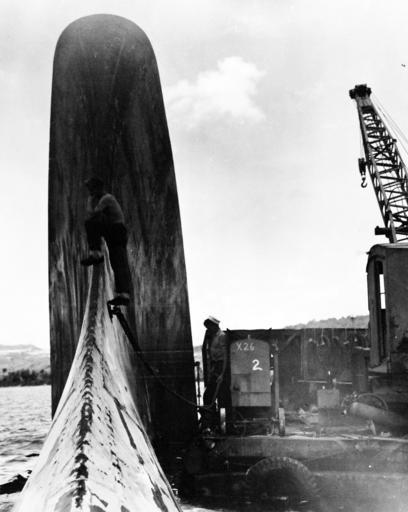 | Keywords: blackandwhite monochrome outdoor black and white 80-G-701465:  USS Pittsburgh (CA 72) being raised from its resting place on the bottom of Agat Harbor Guam.  The bow to the ship was ripped off by a raging Pacific storm.   One of the members of the salvage crew stands atop the remnant with hand on chin as though musing on the power of the storm which could tear off such a massive section of steel.   Photograph released November 2, 1945.   (7/8/2015).  80-G-701465:  USS Pittsburgh (CA 72) being raised from its resting place on the bottom of Agat Harbor Guam.  The bow to the ship was ripped off by a raging Pacific storm.   One of the members of the salvage crew stands atop the remnant with hand on chin as though musing on the power of the storm which could tear off such a massive section of steel.   Photograph released November 2, 1945.   (7/8/2015).   |