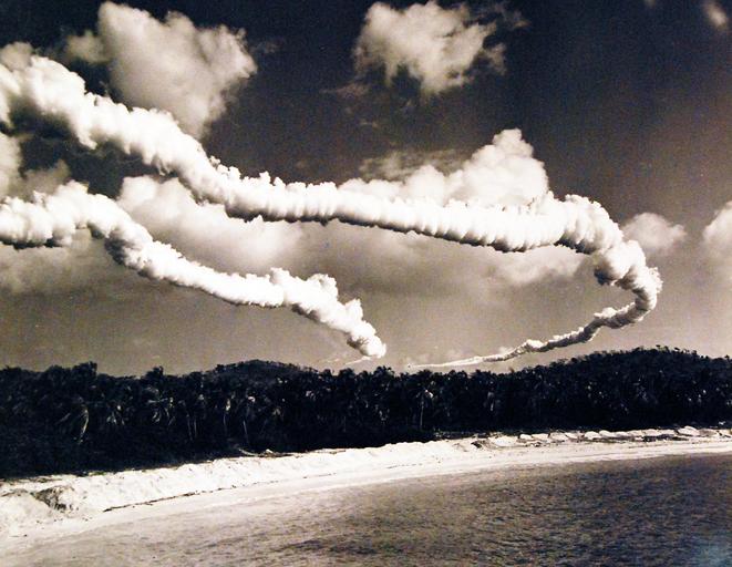 | Keywords: outdoor 80-G-706912: The 1949 Caribbean Maneuvers on Vieques Island, D-minus-One-Day. Fighter planes lay smoke screen over Blue Beach prior to landing of troops. The smoke screen was to harass the “enemy troops” so that they would be unable to see the landing craft as they approached the beach, March 2, 1949. U.S. Navy Photograph, now in the collections of the National Archives. (2016/06/14). 80-G-706912: The 1949 Caribbean Maneuvers on Vieques Island, D-minus-One-Day. Fighter planes lay smoke screen over Blue Beach prior to landing of troops. The smoke screen was to harass the “enemy troops” so that they would be unable to see the landing craft as they approached the beach, March 2, 1949. U.S. Navy Photograph, now in the collections of the National Archives. (2016/06/14). |