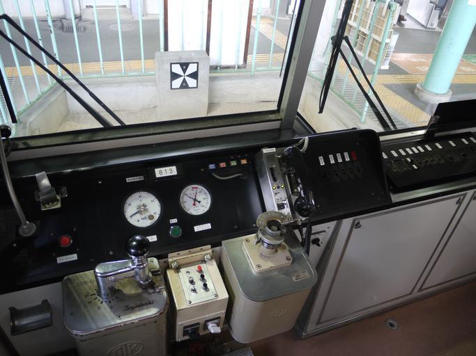 Keywords: 813 cabin 20140817.JPG en Eizan Railway 813 cabin ja 叡電デオ813運転台 2014-08-17 12 51 13 own Hahifuheho cc-zero Uploaded with UploadWizard Eizan Electric Railway series Deo 800 Train driving cabs of Japan