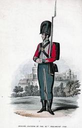 | Keywords: 87th Foot uniform.png 87th Regiment of Foot of the British Army 1793 Plate taken from Historical record of the Eighty-seventh Regiment or the Royal Irish Fusiliers London Parker Furnivall and Parker 1853 http //www archive org/details/recordofeightyse00canniala Digitised copy Author 1842 PD-Art Royal Irish Fusiliers Uniforms of the British Army Historical uniforms of the British military British army of the French Revolution era | ||||