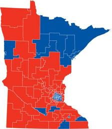 Keywords: 89MNHouseMap.svg Minnesota House of Representatives during the 89th Minnesota Legislature <br /> colorbox ee3523 Republican<br /> 0055a5 DFL 2015-01-06 own LightSoup other versions cc-zero Election maps of Minnesota