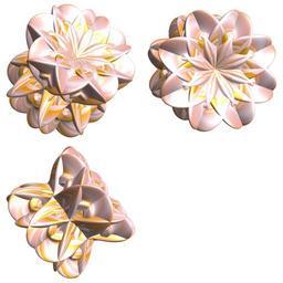 | Keywords: mathematica 3d cg parametricplot3d texture torus 輪環 りんかん ドーナツ どーなつ 四芒星 しぼうせい 四光星 しこうせい 四稜星 しりょうせい program プログラム code コード algorithm コード アルゴリズム geometric sculpture geometricsculpture shape geometry sculpture mapping テクスチャ マッピング 模様 もよう design pattern デザイン パターン graphic グラフィック グラフィクス structure 意匠 構造 symmetry 対称性 たいしょうせい シンメトリー 対称 たいしょう algorithm white background bouquet flower plant SetOptions[ParametricPlot3D, PlotRange -> Full, Mesh -> None, Boxed -> False, Axes -> None, PlotPoints -> 300, ImageSize -> 1000, PlotStyle -> Directive[Specularity[White, 30], Texture[Import["D:/tmp/861.jpg"]]], TextureCoordinateFunction -> ({#4 + #5, #5/Pi} &), Lighting -> "Neutral"]; a = 2;(* center hole size of a torus *) b = 4;(* tetra-torus *) d = 8;(* number of torus *) g[v_] := Sum[Cos[(2 k - 1) v]/(2 k - 1), {k, 4}]; x = (a - g[t] - Sin[b s]) Cos[s + Pi/(2 b)] ; y = Sin[t] ; z = (a - g[t] - Sin[b s]) Sin[s + Pi/(2 b)] ; rot = Table[{x, y, z}.RotationMatrix[2 i Pi/d, {1, 1, 1}], {i, d}]; ParametricPlot3D[rot, {t, 0, 2 Pi}, {s, 0, 2 Pi}] (*--- The Texture The g[] is a 4-partial sum of the Fourier series for Square wave. g[]は矩形波のフーリエ展開の最初の4項 *) SetOptions[ParametricPlot3D, PlotRange -> Full, Mesh -> None, Boxed -> False, Axes -> None, PlotPoints -> 300, ImageSize -> 1000, PlotStyle -> Directive[Specularity[White, 30], Texture[Import["D:/tmp/861.jpg"]]], TextureCoordinateFunction -> ({#4 + #5, #5/Pi} &), Lighting -> "Neutral"]; a = 2;(* center hole size of a torus *) b = 4;(* tetra-torus *) d = 8;(* number of torus *) g[v_] := Sum[Cos[(2 k - 1) v]/(2 k - 1), {k, 4}]; x = (a - g[t] - Sin[b s]) Cos[s + Pi/(2 b)] ; y = Sin[t] ; z = (a - g[t] - Sin[b s]) Sin[s + Pi/(2 b)] ; rot = Table[{x, y, z}.RotationMatrix[2 i Pi/d, {1, 1, 1}], {i, d}]; ParametricPlot3D[rot, {t, 0, 2 Pi}, {s, 0, 2 Pi}] (*--- The Texture The g[] is a 4-partial sum of the Fourier series for Square wave. g[]は矩形波のフーリエ展開の最初の4項 *) |