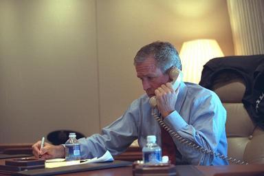 | Keywords: u.s. national archives usnationalarchives nara:arcid=5997228 9/11 911 president george w. bush presidentgeorgewbush 2001 george w. bush presidential library georgewbushpresidentiallibrary air force one airforceone telephone sarasota barksdale air force base airforcebase indoor Original Caption: President George W. Bush confers with staff via telephone from his office aboard Air Force One during the flight from Sarasota to Barksdale Air Force Base. U.S. National Archives’ Local Identifier: P7071-31 Created By: President (2001-2009 : Bush). Office of Management and Administration. Office of White House Management. Photography Office. (01/20/2001 - 01/20/2009) From: Photographs Related to the George W. Bush Administration, compiled 01/20/2001 - 01/20/2009 Production Dates: 09/11/2001 Persistent URL: arcweb.archives.gov/arc/action/ExternalIdSearch?id=5997228 Repository: George W. Bush Library (Lewisville, TX) Access Restrictions: Unrestricted Use Restrictions: Unrestricted Original Caption: President George W. Bush confers with staff via telephone from his office aboard Air Force One during the flight from Sarasota to Barksdale Air Force Base. U.S. National Archives’ Local Identifier: P7071-31 Created By: President (2001-2009 : Bush). Office of Management and Administration. Office of White House Management. Photography Office. (01/20/2001 - 01/20/2009) From: Photographs Related to the George W. Bush Administration, compiled 01/20/2001 - 01/20/2009 Production Dates: 09/11/2001 Persistent URL: arcweb.archives.gov/arc/action/ExternalIdSearch?id=5997228 Repository: George W. Bush Library (Lewisville, TX) Access Restrictions: Unrestricted Use Restrictions: Unrestricted |