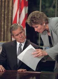 | Keywords: washington d.c. dc u.s. national archives usnationalarchives nara:arcid=5997252 9/11 911 president george w. bush presidentgeorgewbush speech preparation george w. bush presidential library georgewbushpresidentiallibrary 2001 karen hughes karenhughes Original Caption: President George W. Bush reviews notes with Karen Hughes before addressing the nation from the Oval Office. U.S. National Archives’ Local Identifier: P7132-04 Created By: President (2001-2009 : Bush). Office of Management and Administration. Office of White House Management. Photography Office. (01/20/2001 - 01/20/2009) From: Photographs Related to the George W. Bush Administration, compiled 01/20/2001 - 01/20/2009 Production Dates: 09/11/2001 Persistent URL: arcweb.archives.gov/arc/action/ExternalIdSearch?id=5997252 Repository: George W. Bush Library (Lewisville, TX) Access Restrictions: Unrestricted Use Restrictions: Unrestricted Original Caption: President George W. Bush reviews notes with Karen Hughes before addressing the nation from the Oval Office. U.S. National Archives’ Local Identifier: P7132-04 Created By: President (2001-2009 : Bush). Office of Management and Administration. Office of White House Management. Photography Office. (01/20/2001 - 01/20/2009) From: Photographs Related to the George W. Bush Administration, compiled 01/20/2001 - 01/20/2009 Production Dates: 09/11/2001 Persistent URL: arcweb.archives.gov/arc/action/ExternalIdSearch?id=5997252 Repository: George W. Bush Library (Lewisville, TX) Access Restrictions: Unrestricted Use Restrictions: Unrestricted |