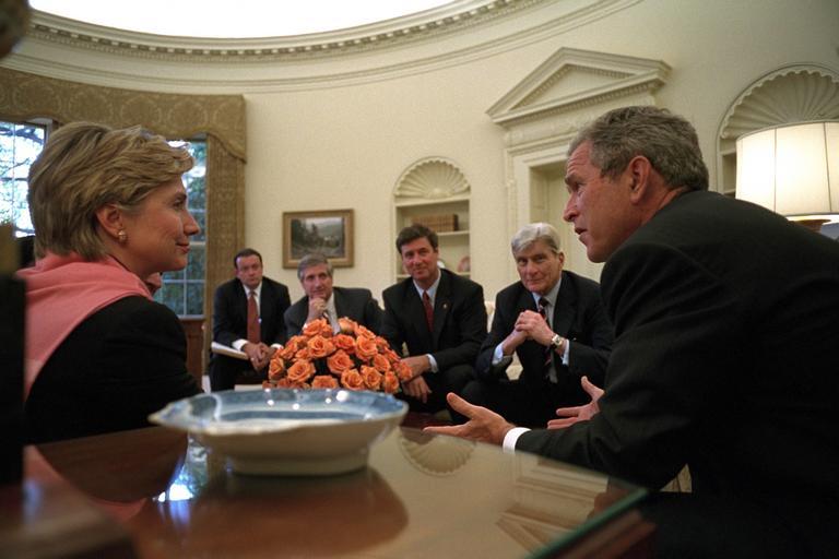 | Keywords: washington d.c. dc u.s. national archives usnationalarchives president george w. bush presidentgeorgewbush 9/11 911 nara:arcid=5997283 george w. bush presidential library georgewbushpresidentiallibrary george w. bush georgewbush officials oval office ovaloffice white house whitehouse new york senator newyorksenator hillary rodham clinton hillaryrodhamclinton ziad ojakli ziadojakli andy card andycard george allan georgeallan john warner johnwarner senator 2001 indoor Original Caption: President George W. Bush meets in the Oval Office with, from left: New York Senator Hillary Rodham Clinton; Ziad Ojakli, Deputy Assistant for Legislative Affairs; Andy Card, Chief of Staff; Senator George Allan; and Senator John Warner. U.S. National Archives’ Local Identifier:P7176-33 Created By: President (2001-2009 : Bush). Office of Management and Administration. Office of White House Management. Photography Office. (01/20/2001 - 01/20/2009) From: Photographs Related to the George W. Bush Administration, compiled 01/20/2001 - 01/20/2009 Production Dates: 09/13/2001 Persistent URL: arcweb.archives.gov/arc/action/ExternalIdSearch?id=5997283 Repository: George W. Bush Library (Lewisville, TX) Access Restrictions: Unrestricted Use Restrictions: Unrestricted Original Caption: President George W. Bush meets in the Oval Office with, from left: New York Senator Hillary Rodham Clinton; Ziad Ojakli, Deputy Assistant for Legislative Affairs; Andy Card, Chief of Staff; Senator George Allan; and Senator John Warner. U.S. National Archives’ Local Identifier:P7176-33 Created By: President (2001-2009 : Bush). Office of Management and Administration. Office of White House Management. Photography Office. (01/20/2001 - 01/20/2009) From: Photographs Related to the George W. Bush Administration, compiled 01/20/2001 - 01/20/2009 Production Dates: 09/13/2001 Persistent URL: arcweb.archives.gov/arc/action/ExternalIdSearch?id=5997283 Repository: George W. Bush Library (Lewisville, TX) Access Restrictions: Unrestricted Use Restrictions: Unrestricted |