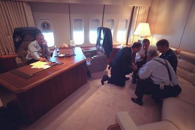 | Keywords: u.s. national archives usnationalarchives nara:arcid=5997231 9/11 911 president george w. bush presidentgeorgewbush 2001 office telephone george w. bush presidential library georgewbushpresidentiallibrary air force one airforceone huddle senior staff seniorstaff indoor Original Caption: President George W. Bush talks on the telephone as senior staff huddle in his office aboard Air Force One. U.S. National Archives’ Local Identifier: P7079-10 Created By: President (2001-2009 : Bush). Office of Management and Administration. Office of White House Management. Photography Office. (01/20/2001 - 01/20/2009) From: Photographs Related to the George W. Bush Administration, compiled 01/20/2001 - 01/20/2009 Production Dates: 09/11/2001 Persistent URL: arcweb.archives.gov/arc/action/ExternalIdSearch?id=5997231 Repository: George W. Bush Library (Lewisville, TX) Access Restrictions: Unrestricted Use Restrictions: Unrestricted Original Caption: President George W. Bush talks on the telephone as senior staff huddle in his office aboard Air Force One. U.S. National Archives’ Local Identifier: P7079-10 Created By: President (2001-2009 : Bush). Office of Management and Administration. Office of White House Management. Photography Office. (01/20/2001 - 01/20/2009) From: Photographs Related to the George W. Bush Administration, compiled 01/20/2001 - 01/20/2009 Production Dates: 09/11/2001 Persistent URL: arcweb.archives.gov/arc/action/ExternalIdSearch?id=5997231 Repository: George W. Bush Library (Lewisville, TX) Access Restrictions: Unrestricted Use Restrictions: Unrestricted |