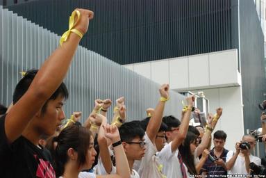 | Keywords: 香港學民思潮宣佈926中學生罷課安排 (7).jpg zh-tw 數十名中學生高舉綁上代表 普選的黃絲帶的手,展示參與中學生罷課爭取 普選的決心 2014-09-23 02 23 21 http //www voacantonese com/content/cantonese-it-hong-kong-scholarism-classes-strike-detail-0913-ry/2448650 html 湯惠芸 Custom license marker 2014 09 22 PD-USGov-VOA Uploaded with UploadWizard 2014 Hong Kong student strike Scholarism |