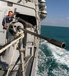 | Keywords: 971121-N-1434K-003 Chain Gun.jpg en 971121-N-1434K-003 November 21st 1997 On board the destroyer USS Benfold DDG 65 operating in the Northern Persian Gulf Gunner's Mate Guns 1st Class Joe Brown from Arlington Texas mans a 25mm chain gun while on watch in the Persian Gulf The ship home ported in San Diego California is currently deployed with the aircraft carrier USS Nimitz CVN 68 battle group under the U S Navy s Fifth Fleet Benfold is currently conducting Multinational Maritime Interception Operations as part of the UN sanctions against Iraq U S Navy photo by Photographer s Mate 2nd Class Rebecca Kearns Released 1997-11-21 971121-N-1434K-003 Navy http //www navy mil/view_image asp id 463 U S Navy photo by Photographer s Mate 2nd Class Rebecca Kearns PD-USGov-Military-Navy Mk 38 25mm chain gun Aboard USS Benfold DDG-65 |
