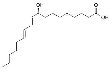 Keywords: 9-HODE.svg Chemical structure of 9-HODE; 9S-hydroxy-10 E 12 Z -octadecadienoic acid α-dimorphecolic acid Own 18 54 29 August 2015 UTC Ed Edgar181 Unsaturated fatty acids