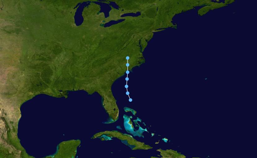 Keywords: 9-L 1987 track.png Track map of Tropical Depression Nine of the 1987 Atlantic hurricane season The points show the location of the storm at 6-hour intervals The colour represents the storm's maximum sustained wind speeds as classified in the Saffir-Simpson Hurricane Scale see below and the shape of the data points represent the nature of the storm according to the legend below User Nilfanion/Tc/T Created by Cyclonebiskit using Wikipedia WikiProject Tropical cyclones/Tracks The background image is from NASA Tracking data switch source from the National Hurricane Center <sup>http //www nhc noaa gov/pastall shtml</sup> from the Central Pacific Hurricane Center <sup>http //www prh noaa gov/cphc/summaries/</sup> from the Joint Typhoon Warning Center <sup>https //metocph nmci navy mil/jtwc/best_tracks/</sup> from the Japan Meteorological Agency <sup>http //www jma go jp/jma/jma-eng/jma-center/rsmc-hp-pub-eg/besttrack html</sup> from the National Hurricane Center <sup>http //www nhc noaa gov/pastall shtml and the Central Pacific Hurricane Center http //www prh noaa gov/cphc/summaries/</sup> from the Central Pacific Hurricane Center <sup>http //www prh noaa gov/cphc/summaries/ and the Joint Typhoon Warning Center https //metocph nmci navy mil/jtwc/best_tracks/</sup> from the w National Hurricane Center <sup>http //www nhc noaa gov/pastall shtml</sup> or the Joint Typhoon Warning Center <sup>https //metocph nmci navy mil/jtwc/best_tracks/</sup> September 7-8 1987 Cyclonebiskit 1987 Atlantic hurricane season Tropical cyclone tracks Atlantic hurricane tracks |