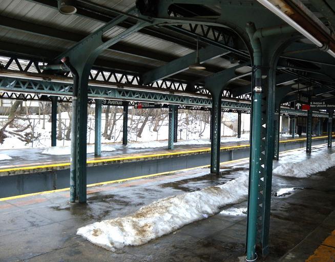 | Keywords: 9Av BMT nb platform jeh.JPG en Looking west from the last car of a northbound Sea Beach train at the platform of the 9th Avenue Station of the West End Line on a cloudy Christmas afternoon after snow See also File West End BMT 9th Av sta jeh JPG for the head house own Jim henderson 2009-12-25 40 38 45 8 N 73 59 37 6 W alt 0_source exif_heading W cc-zero Ninth Avenue BMT West End Line Snow in Brooklyn New York City | ||||