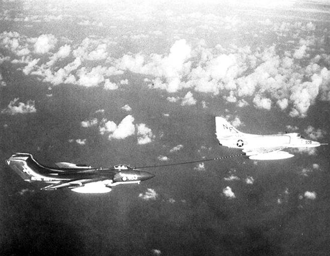 | Keywords: A-4E Skyhawk of VA-55 refuels Sea Vixen FAW2 of 893 NAS in May 1964.jpg A U S Navy Douglas A-4E Skyhawk from Attack Squadron 55 VA-55 Warhorses refuels a Royal Navy De Havilland Sea Vixen FAW 2 from 893 Naval Air Squadron VA-55 was assigned to Attack Carrier Air Wing 5 CVW-5 aboard the aircraft carrier USS Ticonderoga CVA-14 for a deployment to the Western Pacific and Vietnam from 14 April to 15 December 1964 893 NAS was assigned to HMS Victorious R38 Both carriers took part in a SEATO exercise off the Philippines in May 1964 U S Navy photo http //www navysite de/cruisebooks/cv14-64/096 htm from the http //www navysite de/cruisebooks/cv14-64/index_004 htm USS Ticonderoga CVA-14 1964 cruise book available at http //navysite de/cruisebooks/index html Navysite de 1964-05 U S Navy PD-USGov-Military-Navy A-4E Skyhawk De Havilland Sea Vixen Attack Squadron 55 United States Navy 893 Naval Air Squadron Aerial refueling LIGTAS 1964 military exercise |