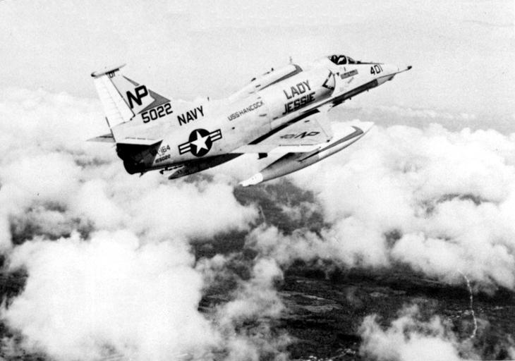 Keywords: A-4F Skyhawk Lady Jessie of VA-164 in flight 1975.jpg A U S Navy Douglas A-4F Skyhawk BuNo 155022 from Attack Squadron VA-164 Ghostriders in flight VA-164 was assigned to the aircraft carrier USS Hancock CV-19 for a deployment to the Western Pacific from 18 March to 20 October 1975 <br> Since late 1967 the squadron commander's aircraft 401 of VA-164 was named Lady Jessie to honour LCdr R C Perry who had been shot down and killed in his Lady Jessie A-4E BuNo 151991 on 31 October 1967 U S Navy photo http //www navysite de/cruisebooks/cv19-75/229 htm from the http //www navysite de/cruisebooks/cv19-75/index_021 htm USS Hancock CV-19 1975 cruise book available at http //navysite de/cruisebooks/index html Navysite de 1975 U S Navy PD-USGov-Military-Navy A-4F Skyhawk Attack Squadron 164 United States Navy |