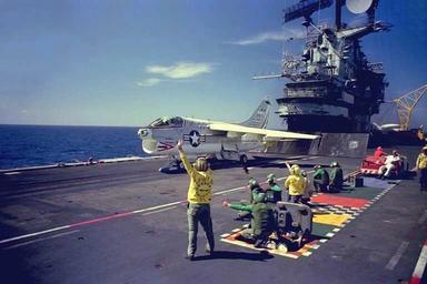 | Keywords: A-7B VA-215 on cat USS Oriskany (CV-34) 1976.JPG A U S Navy LTV A-7B Corsair II of attack squadron VA-215 Barn Owls with 1976 Bicentennial markings on the catapult of the aircraft carrier USS Oriskany CV-34 VA-215 was assigned to Carrier Air Wing 19 CVW-19 aboard the Oriskany for her last deployment before decommissioning from 16 September 1975 to 3 March 1976 to the Western Pacific A-7 veteran's website http //yellowairplane com/Exhibits/Gordon_Doody/Gordon_Doody_A7_Photos_10-5 html photo http //yellowairplane com/Exhibits/Gordon_Doody/Gordon_Doody_CAT JPG 1976 Gordon Howdy Doody USN pilot VA-215 PD-USGov-Military-Navy A-7B Corsair II Aboard USS Oriskany CV-34 United States Bicentennial Attack Squadron 215 United States Navy 1976 in aviation |