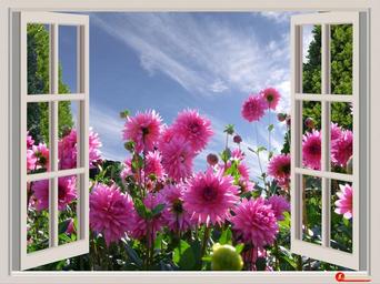 | Keywords: a beautiful day good mood joy dahlias flowers window summer midsummer late summer summer flowers sky blue red flowers a beautiful morning garden red dahlias outlook south park düsseldorf window frames colorful horticulture photo montage germany |