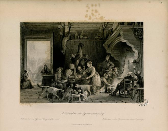 | Keywords: A Cabaret in the Pyrenees (rainy day) = Cabaret dans les Pyrénées (Un jour pluvieux) = Wirthshaus in den Pyreneen (an einem regentage) - Fonds Ancely - B315556101 A ALLOM 1 014.jpg Extrait des trois volumes de La France au XIXe siècle de Thomas Allom qui contient 19 planches concernant les Pyrénées pl 45 49 55 62 68 75 78 80 81 83 Tome II et 5 7 16 37 42 45 65 83 85 Tome III Dans chaque tome le faux titre est gravé sur acier et rédigé en anglais Les planches pyrénéennes ont souvent été réunies en albums sans texte Cet exemplaire réunit 22 gravures sur acier en noir et blanc concernant les Pyrénées et Toulouse - Planches séparées Gravures exécutées par A Willmore C T Dixon E Radclyffe J Kernot W Floyd R Wallis S Fischer J C Bently H Adlard Augs Fox J Templeton S Bradshaw J Tingle T Turnbull J Carter d'après les dessins de T Allom Ancely René 1876 - 1966 Possesseur eng fre ger public domain domaine public B315556101_A_ALLOM_1_014 jpg image/jpeg 1 f de pl gr en n et b ; 27 cm Delille Charles-Jean Collaborateur Fox A Graveur http //numerique bibliotheque toulouse fr/collect/general/index/assoc//ark /74899/B315556101_A_ALLOM_1_014 dir/B315556101_A_ALLOM_1_014 jpg Bibliothèque municipale de Toulouse A-ALLOM 1-14 Creator Thomas Allom http //catalogues toulouse fr/web2/tramp2 exe/do_keyword_search/log_in setting_key BMT1 servers 1home query p000155 City of Auch Pyrenees La ville d'Auch Pyrénées Die Stadt Auch Pyreneens Château and bridge of Pau Château et pont de Pau Schlosz sic und brücke zu Pau Castle of Pau the birth-place of Henri Quatre Château de Pau lieu de naissance de Henri IV Schloss Pau geburtsort Heinrichs IV Pic du Midi d'Ossau Der Pic du Midi d'Ossau Eaux-Bonnes in the Pyrenees Eaux-Bonnes dans les Pyrénées Eaux-bonnes in den Pyreneen The Col de Tortes - Hunting the Izard Le col de Tortes - Chasse de l'Izard Der Col de Tortes - Die jagd des Izard Val d'Azun High Pyrenees Val d'Azun Hautes-Pyrénées Das Thal Azun Pyreneen Cauterets in the Pyrenees Cauterets dans les Pyrénées Cauterets in den Pyreneen Pont d'Espagne High Pyrenees Pont d'Espagne Hautes-Pyrénées Spanische Brücke Hohe Pyreneen Lac de Gaube Pyrennees Lac de Gaube Pyrénées Der see zu Gaube in den Pyreneen Church of the Knights Templars at Luz Eglise des Templiers à Luz Kirche der Malteser zu Luz Double bridge of Scia Valley of the Gave de Gavarnie Double pont de Scia Vallée du gave de Gavarnie Doppel brücke bei Scia Gave-Thal von Gavarnie The Circle of Gavarnie Pyrenees Cercle ou creux de Gavarnie Pyrénées Kries oder Kessel von Gavarnie Pyreneen Saint Beat upper Garonne Saint-Béat Haute-Garonne St Beat Ober-Garonne Bagnères de Luchon Pyrénées Bagnères de Luchon Pyreneen Castle and Valley d'Oo - Pyrenees Château et Vallée d'Oo-Pyrénées Schloss und Thal von Pyreneen Lake d'Oo - High Pyrenees Lac d'Oo Hautes-Pyrénées Der See d'Oo Obere Pyreneen The Bridge of Toulouse Pont de Toulouse Die Brücke zu Toulouse Church of Saint Sernin Toulouse Eglise de Saint-Sernin à Toulouse Die Kirche des Heil Sernin in Toulouse Church of St Taur Toulouse Eglise de Saint-Taur Toulouse St Taur Kirche Toulouse The Capitol of Toulouse Capitole de Toulouse Capitol zu Toulouse vignette http //numerique bibliotheque toulouse fr/collect/general/index/assoc//ark /74899/B315556101_A_ALLOM_1_014 dir/B315556101_A_ALLOM_1_014_thumb jpeg by 1840 A Cabaret in the Pyrenees rainy day Cabaret dans les Pyrénées Un jour pluvieux Wirthshaus in den Pyreneen an einem regentag B315556101_A_ALLOM_1_014 print - steel engraving Women in art Dishes Canteens Chairs in art Hunters Fireplaces in France Fireplaces in art History of Pyrénées Game hunting Traditional costumes of Midi-Pyrénées Thomas Allom Fire in art Stools Men in art Rooms Guest houses in France People with baskets in art |