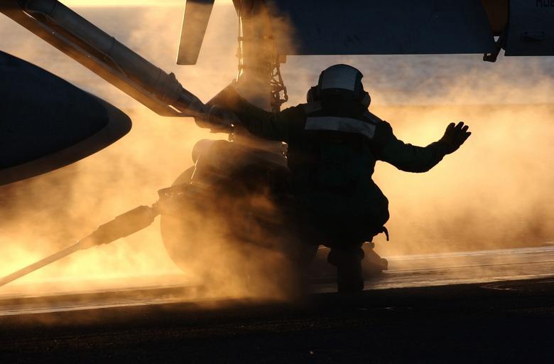 | Keywords: US Navy 021121-N-0905V-002 A catapult crewmember communicates with flight deck personnel.jpg en At sea with USS Carl Vinson CVN 70 Nov 21 2002 -- A catapult crewmember communicates by hand signals with flight deck personnel while preparing an aircraft to launch from one of four steam catapults on the ship's flight deck Carl Vinson is currently underway off the Southern Coast of California conducting training in preparation for their next scheduled deployment U S Navy photo by Photographer's Mate Airman Chris M Valdez RELEASED 2002-11-21 021121-N-0905V-002 Navy http //www navy mil/view_image asp id 3438 U S Navy photo by Photographer's Mate Airman Chris M Valdez PD-USGov-Military-Navy Aboard USS Carl Vinson CVN-70 |