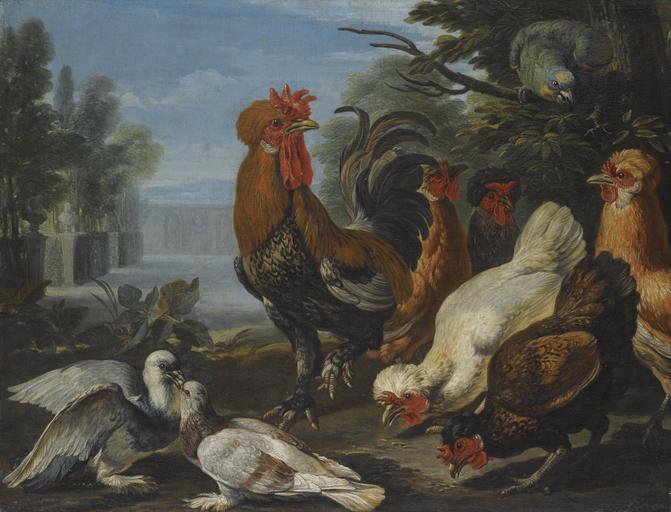 | Keywords: A Cockerel, Hens, Doves and a Parrot by David de Coninck.jpg Artwork Creator David de Coninck oil canvas cm 73 7 96 8 accession number object history Anonymous sale Milan Sotheby's 14 June 2011 lot 62 as Giovanni Crivelli called Crivellino credit line http //www sothebys com/en/auctions/ecatalogue/2012/old-master-early-british-paintings-l12030/lot 84 html Sotheby's London 2012 05 02 L12030 lot 84 PD-old-100 David de Coninck Paintings of Doves Images from Sotheby's Paintings of chickens | ||||
