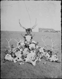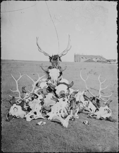 | Keywords: A collection of buffalo, elk, deer, mountain sheep and wolf skulls and bones near Fort Sanders. Albany County, Wyoming. - NARA - 516956.jpg Scope and content General notes 516956 Local identifier 57-HS-348 Department of the Interior General Land Office U S Geological and Geographic Survey of the Territories 1874 - 06/30/1879 NARA-Author Jackson William Henry 1843-1942 Photographer 1116078 <br /> Still Picture Records Section Special Media Archives Services Division NWCS-S National Archives at College Park 8601 Adelphi Road College Park MD 20740-6001 1870 Record group Record Group 57 Records of the U S Geological Survey 1839 - 2008 Record group ARC 386 Hayden Survey William H Jackson Photographs compiled 1869 - 1878 Series ARC 516606 File unit File unit ARC Variant control numbers NAIL Control Number NWDNS-57-HS-348 Other versions <gallery> File A_collection_of_buffalo _elk _deer _mountain_sheep_and_wolf_skulls_and_bones_near_Fort_Sanders _Albany_County _Wyoming _-_NARA_-_516956 tif tif File A_collection_of_buffalo _elk _deer _mountain_sheep_and_wolf_skulls_and_bones_near_Fort_Sanders _Albany_County _Wyoming _-_NARA_-_516956 jpg jpg </gallery> NARA-cooperation PD-USGov Mammal skulls Bison skulls Cervus canadensis Antlers Fort Sanders Historic District 1870 in Wyoming Albany County Wyoming Animal bones |
