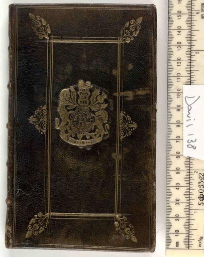 | Keywords: A Collection of the Several Statutes... relating to High Treason - Upper cover (Davis138).jpg Style Armorial; Caption Upper cover; Colour Brown; Edge Gilt exhibition history Decorative Technique Tooled in gold; Cover Material Goatskin includes morocco turkey etc For other bindings with the arms or cypher of Queen Anne see c46e28 c65e15 c109a8 223i4 217e1 59f2 687l14 522k21 225a14 c37l13 16a1 43f27 136g6-9 223i4 225a14 c188b6 75i4 object history Text 1709; London; Anne Queen of England 1702-1714 object type Cc-zero place of creation Binding England place of discovery To research armorials see British Armorial Bindings Database sponsored jointly by the Bibliographical Society and the University of Toronto http //armorial library utoronto ca British Library image http //www bl uk/catalogues/bookbindings/LargeImage aspx RecordId 020-000003432 ImageId ImageId 41321 Copyright BL A Collection of the Several Statutes relating to High Treason Uploaded with GWToolset A Collection of the Several Statutes relating to High Treason - Upper cover Davis138 http //www webarchive org uk/bldatasets/bindings/5838_4 jpg Bookbinding 18th-century bookbinding British Library Bookbindings |
